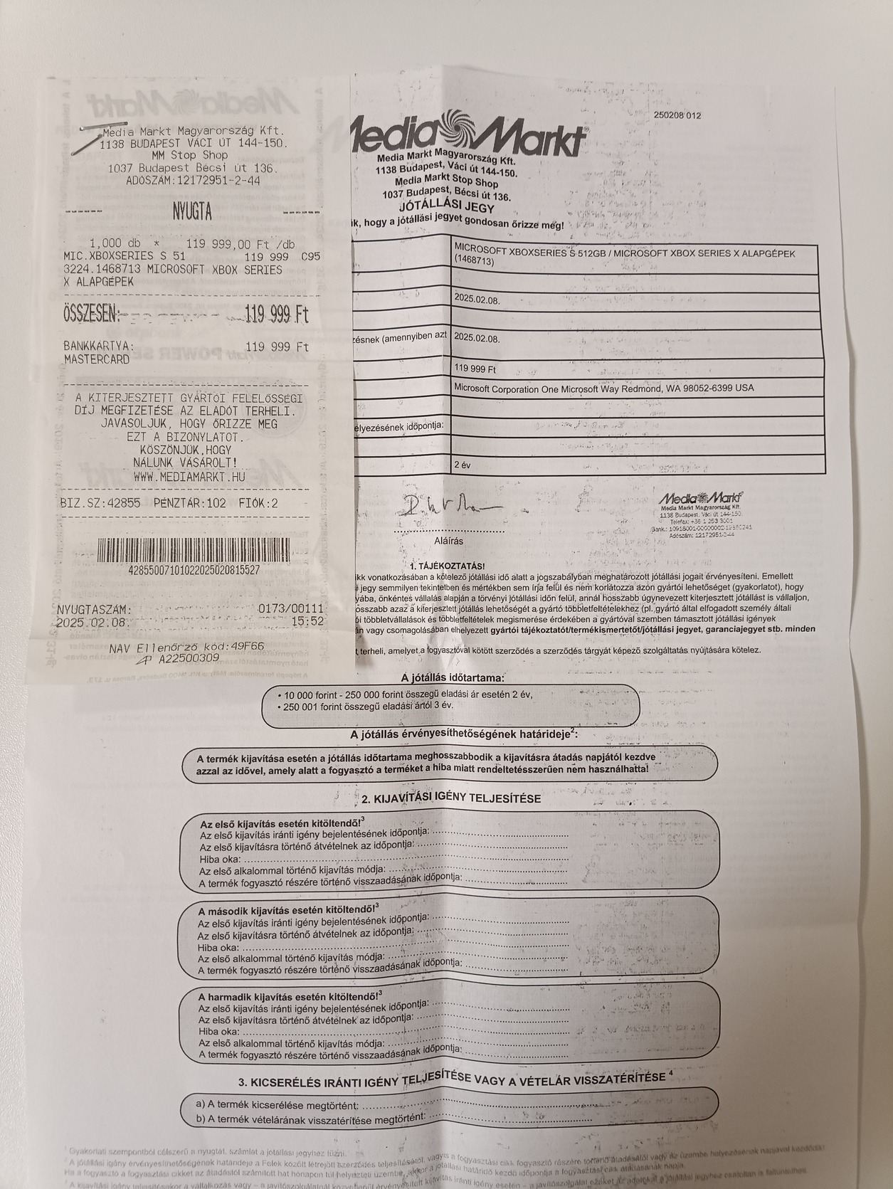 - számla ès garanciajegy