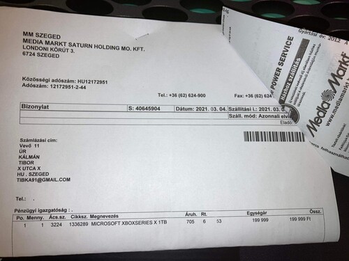 XBOX series X 2023.03.04-ig Media Markt Garanciás