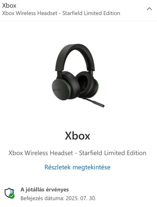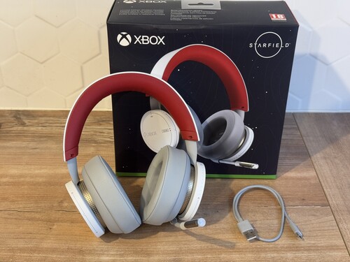 Starfield Xbox Wireless headset dobozában, kábelével.