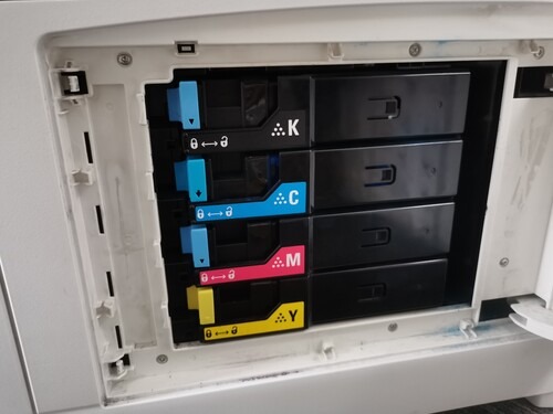 Jelenleg utángyártott tonerek vannak benne, emiatt a fekete színt például kicsit haloványan nyomtatja, de még kapható hozzá eredeti is (28 ezer/db). Adunk hozzá viszont még pár utángyártottat.