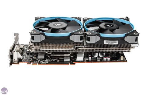 Eredetileg referencia modellről beszélünk, de a hűtőjét lecseréltem a kártyához kapható legerősebb hűtőre, egy Raijintek Morpheus-ra, amit két méretes ventilátor hűt. A kártya hűtése annyira hatékony, hogy terhelés alatt is 80 fok alatt marad! A hűtőről itt olvashatsz: [link]