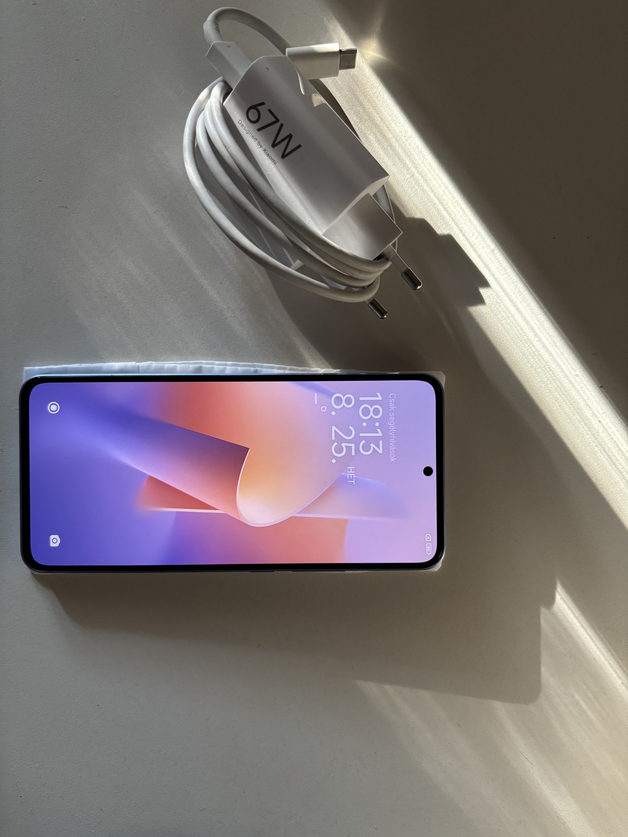 Dobozával, saját 67W töltőjével.