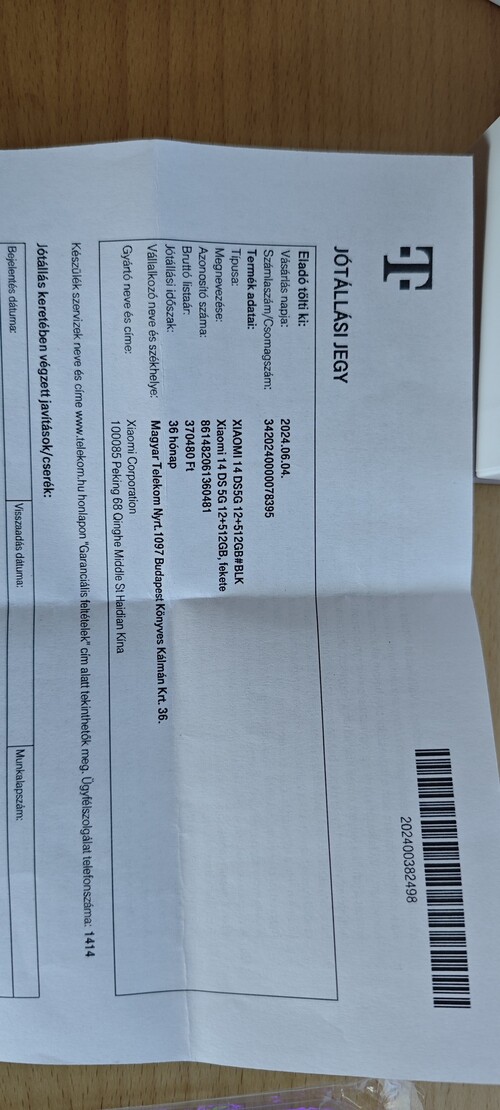 Eladó egy makulátlan Xiaomi 14 5g 12/512Gb fekete színű telefon. 2024.06.04-én telekomos egyösszegben vásárolt innentől él 3 év garancia. Garanciajegy,számla.
