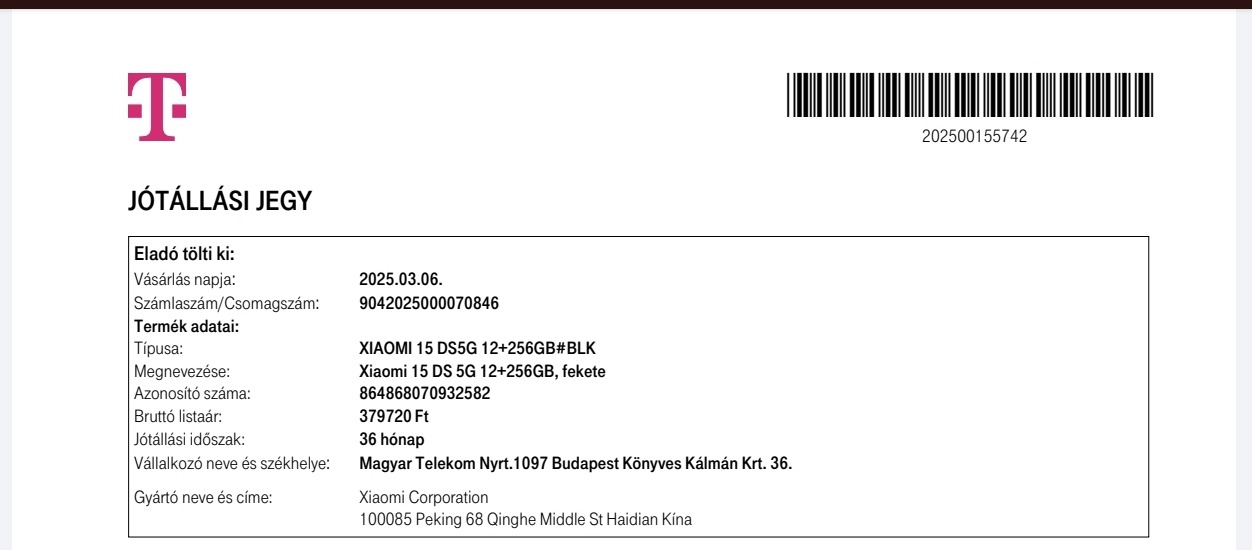 Xiaomi 15 - Karcmentes - Garanciális