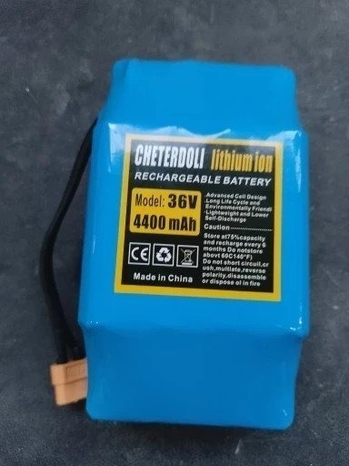 4.4 Ah, 36V-os akupakk párhuzamos kábellel (30A védelem, XT30 apa+anya csatlakozó és XT60 anya csatlakozó) rögzító elemekkel.