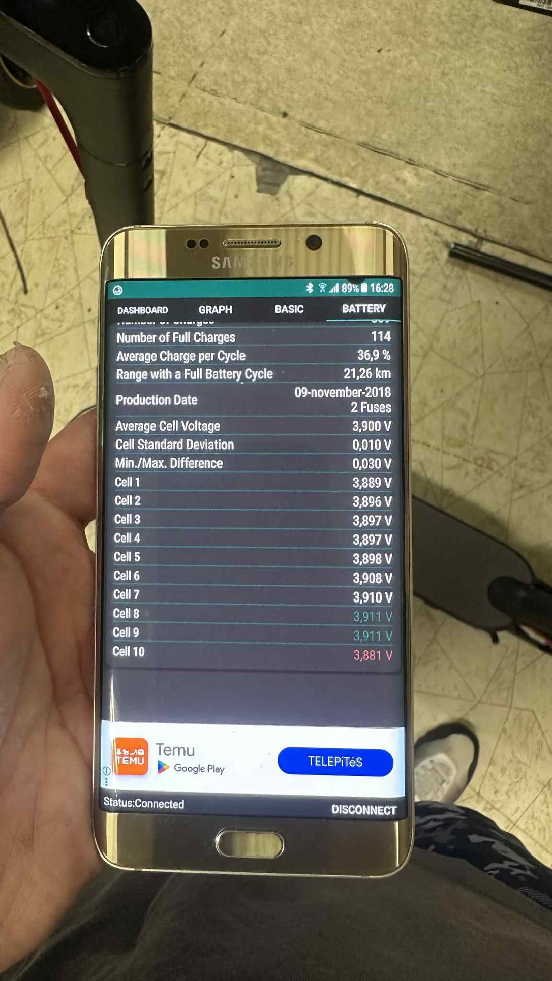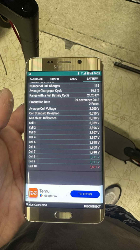 Amint a képeken látható a roller nem egy retekhalmaz, nem úszik a koszban. - akkucella állapota "hibátlan" tartja a feszültséget, melyről teszek fel képet.