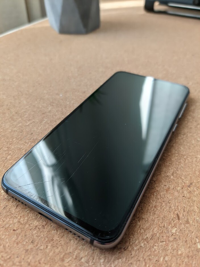Sajnos a kijelző alsó harmadán karcolások láthatóak. Ezek a működést és kijelzőbe épített újlenyomat olvasást negatív módon nem befolyásolják.