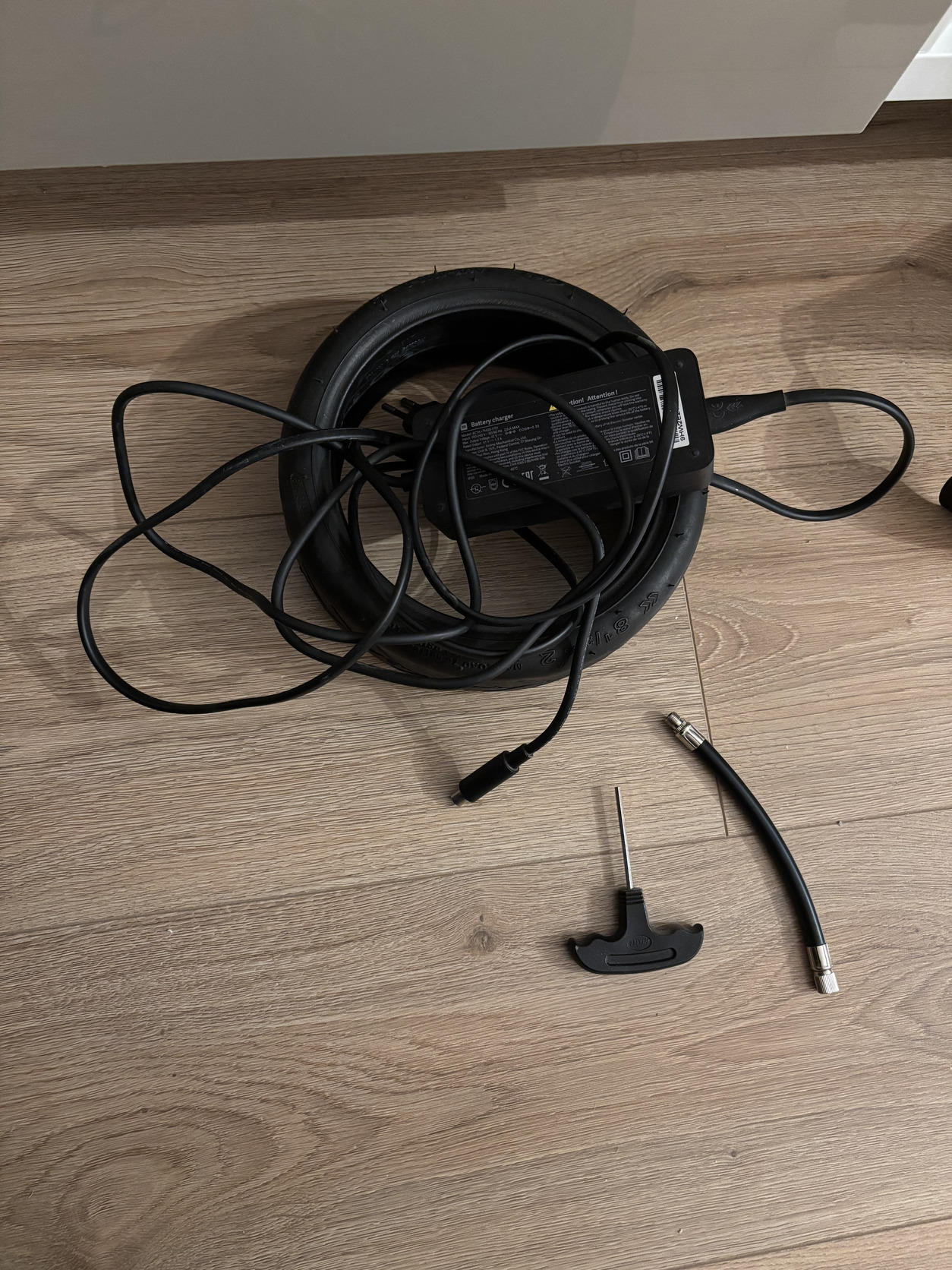 Az adásvétel tárgyát a roller, a gyári töltője, egy gyári pótkerék, egy imbuszkulcs, és egy fúvóka adapter képezi.