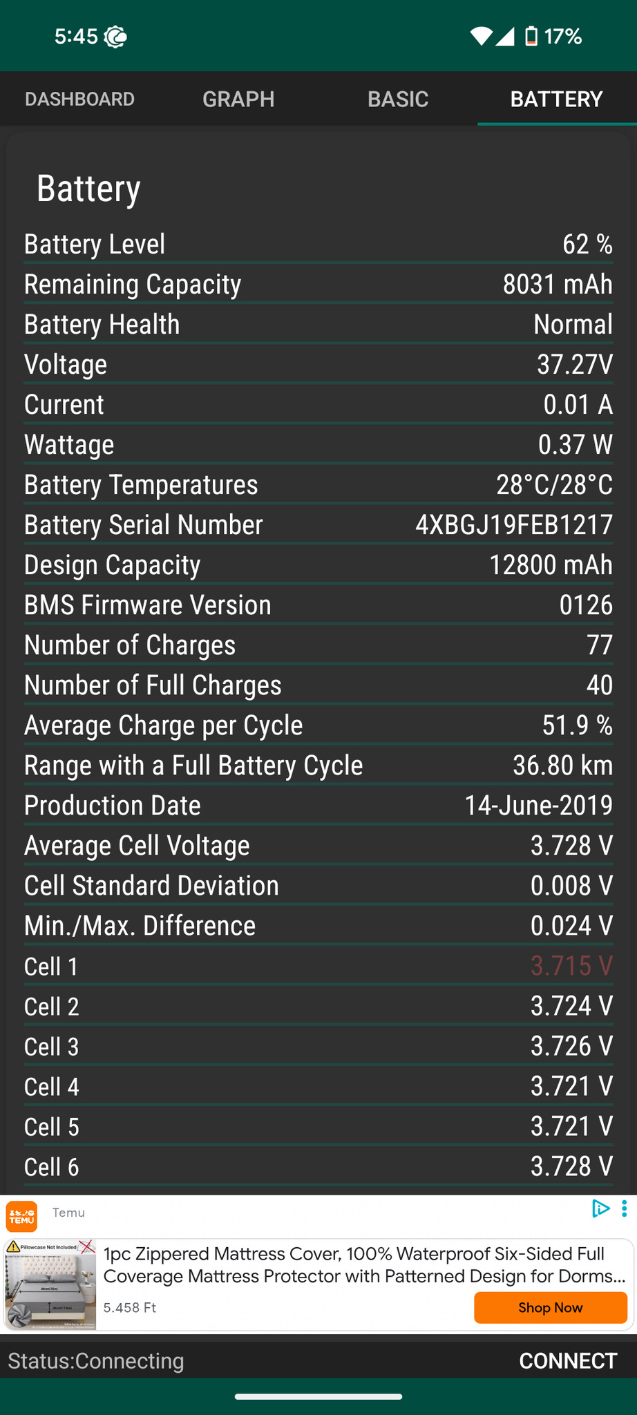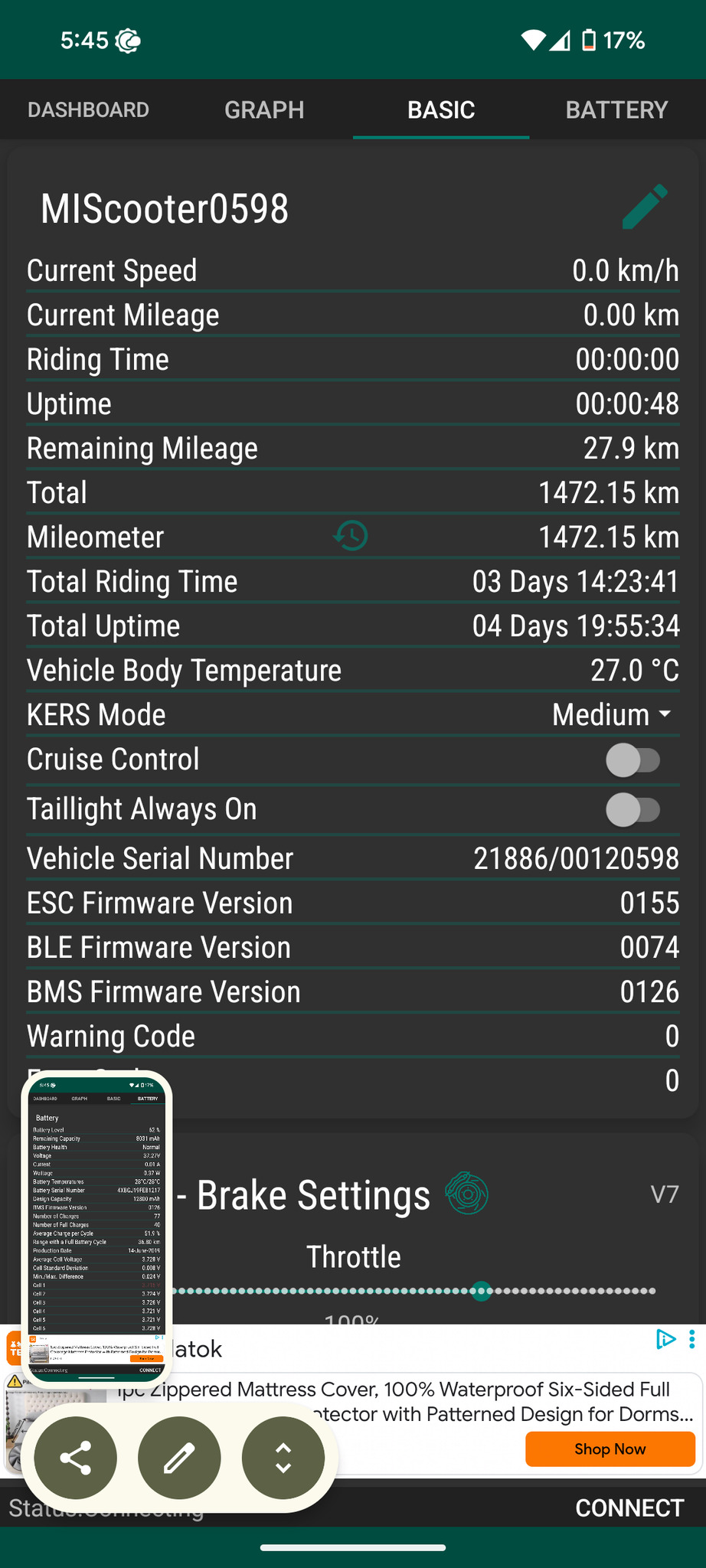 - Battery health szerint 36km-t tud egy töltéssel menni