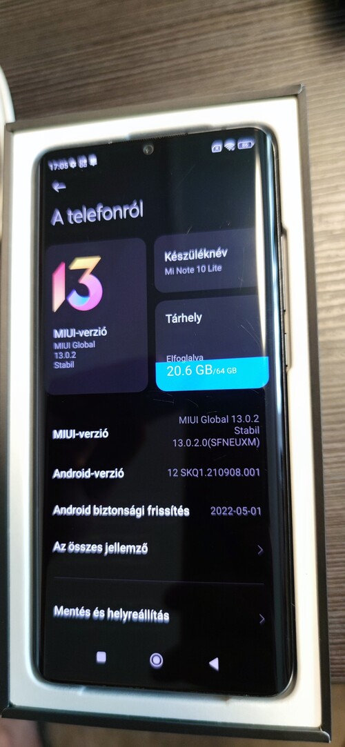 A csomag tartalma: telefon, doboz, töltő, sim tű, szilikon tok