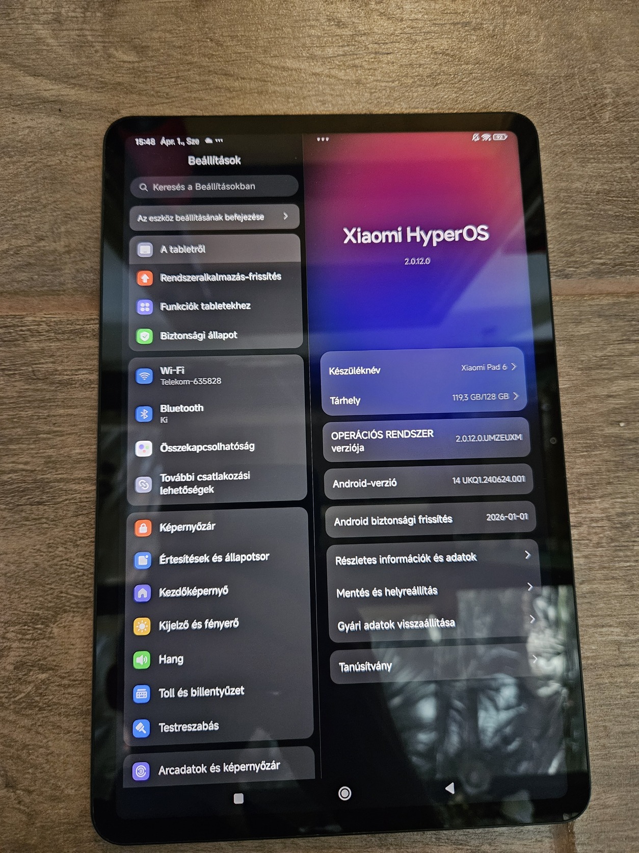 Kihasználatlanság miatt eladó Xiaomi pad 6/128gb szép allapotban. Hardveraprón vettem megbízható tagtól, keveset használtam, akku jól bírja. A képernyőn minimális mikrokarc van, a hátlapon egy aprócska horpadás, ami a képek közt látható. Minden funkciója jól működik. Ha nagyon hibát akarnék keresni rajta, akkor azt mondanám, hogy a hangerő föl-le gombok nem klikkelnek akkorát, mint a power gomb, de ez csak szőrszál hasogatás, mivel tökéletesen működik minden gomb.
