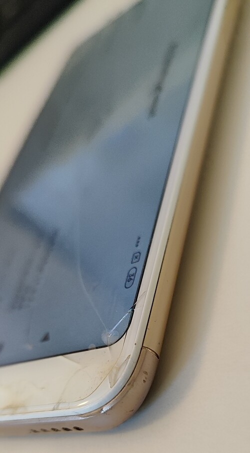 Sarkára esett, betört az üveg. A fóliának köszönhetően egyben van, nem hullik. Az érintést mindenhol érzékeli, teljesen működőképes a telefon. A keretnek nem esett baja. Fehér/arany színű. A doboza megvan, a tartozékai (töltő, kábel, SIM-tű) nincsenek. Adok hozzá 3 db. hozzá való TPU-fóliát.