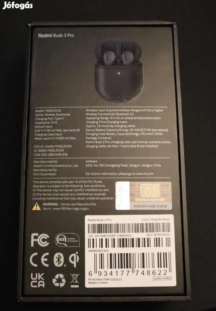 Eladóvá vált egy Xiaomi Redmi Buds 3 Pro vezeték nélküli fülhallgató. Kategóriájában
