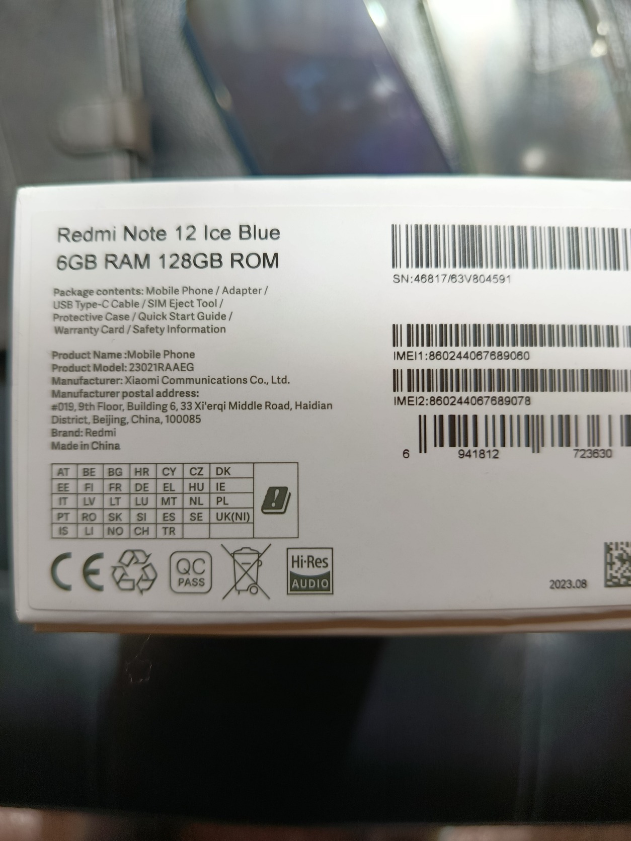 Xiaomi redmi note12 6/128 ice blue