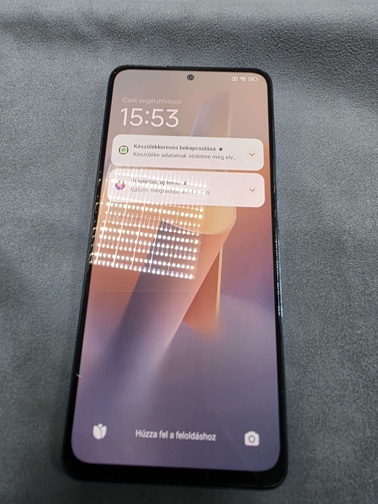 A kijelző karcmentes, végig üvegfólia védte. A hátlapon, a kamera környékén látható enyhe kopás, valamint a kereten is találhatók használatból eredő nyomok.