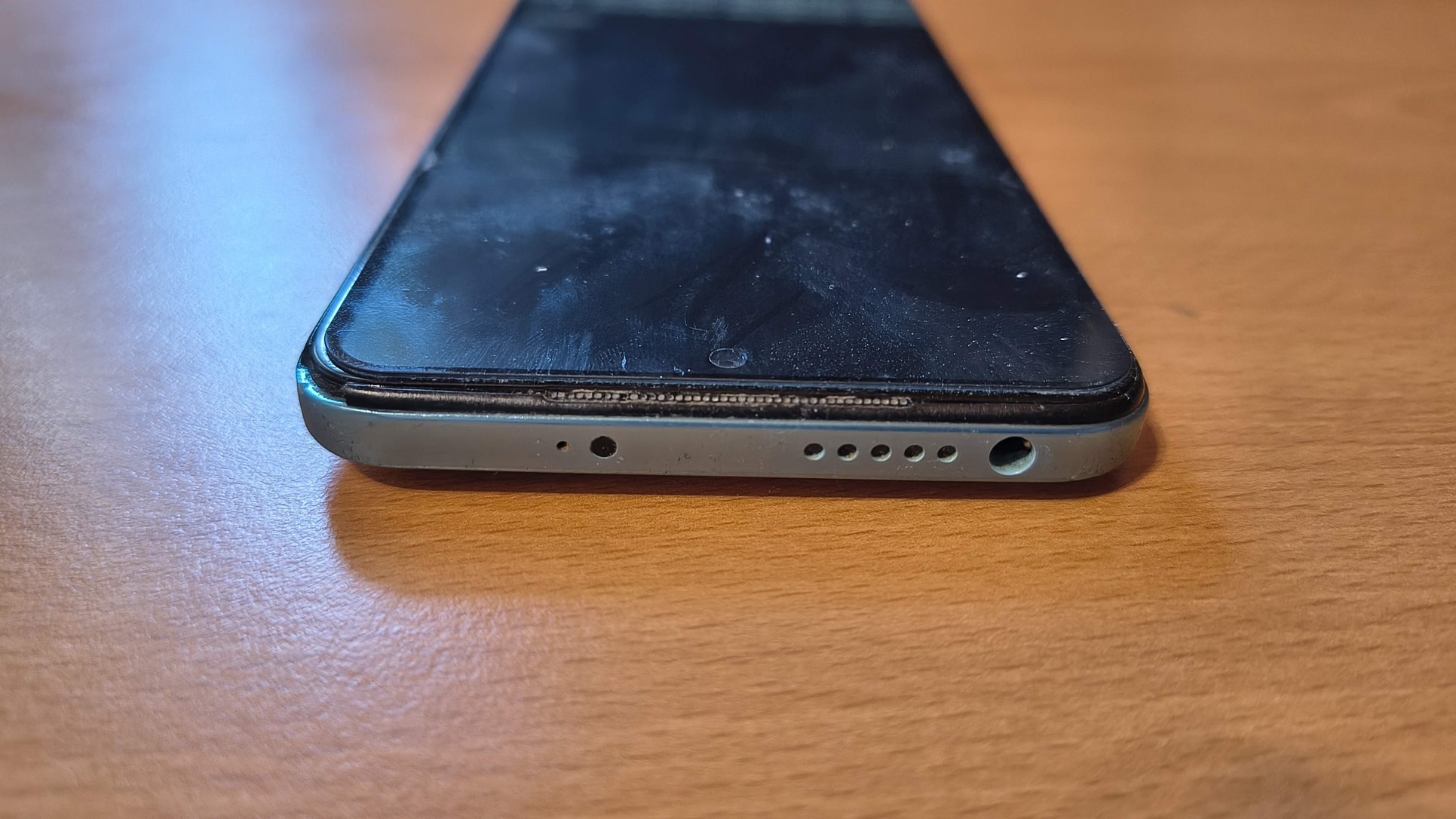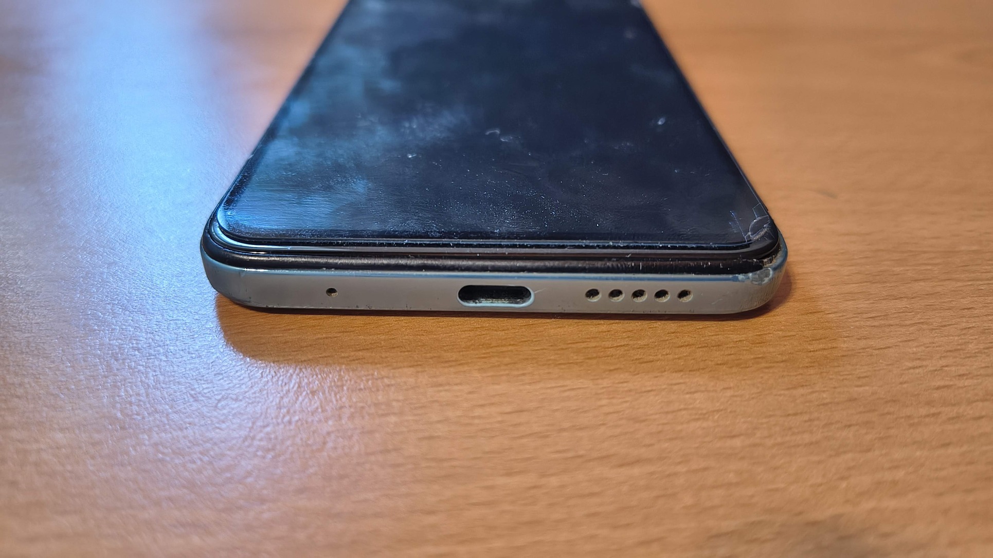A kijelzőjén mindig üvegfólia volt/van, így azzal nincs gond, a hátlapja egyben van, viszont meg van repedve több helen is (lásd a képeken).