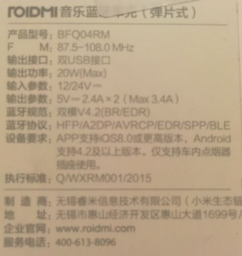 Xiaomi Roidmi 3S bluetooth FM transzmitter, dupla USB-s autós töltő, fekete (bontatlan)