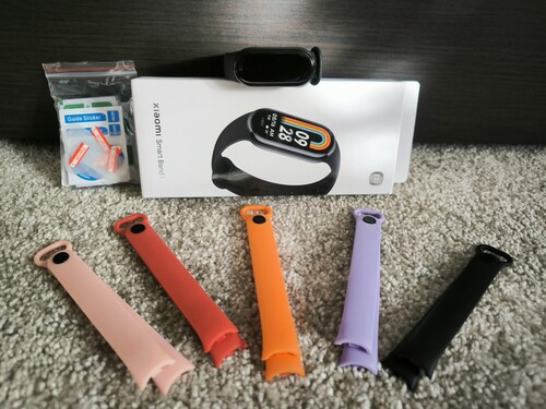 Eladó a képen látható Xiaomi Smart Band 8 aktivitásmérő és kiegészítői. A termék 2025.04.25-ig garanciás a MediaMarktban.