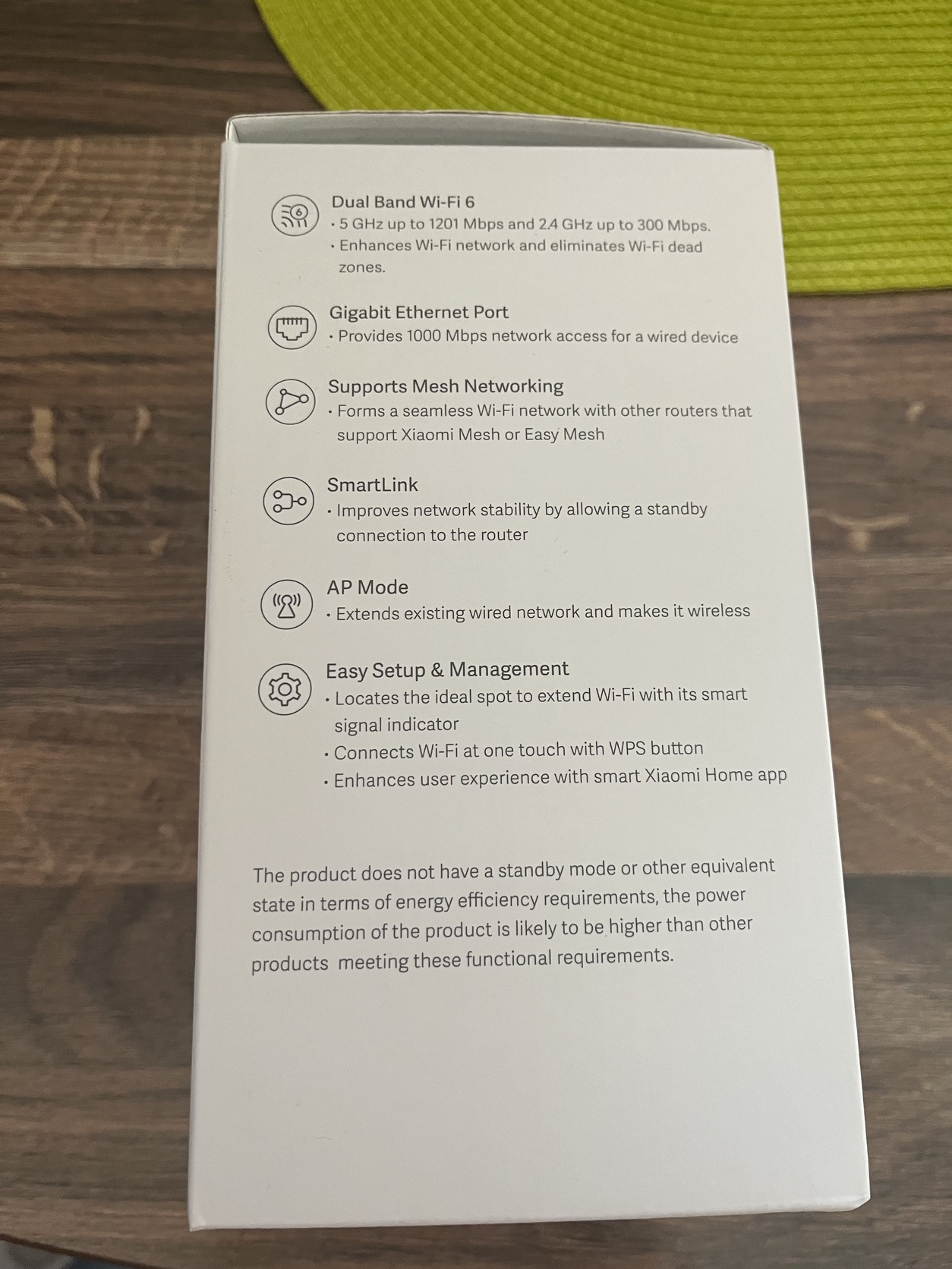 A Xiaomi Wi-Fi Range Extender AX1500 egy új generációs, Wi-Fi 6 technológiát használó eszköz, amelyet arra terveztek, hogy megnövelje otthoni vagy irodai vezeték nélküli hálózatának hatótávolságát, megszüntetve a gyenge jelű területeket és a "Wi-Fi holt zónákat".
