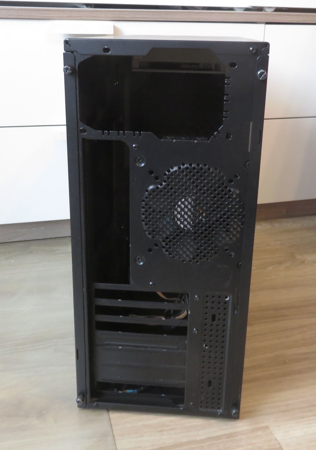 Az alaplapi távtartók és csavarok vannak benne, valamint tartalmaz egy 120mm-es ventilátort és egy dvd/rw meghajtót.