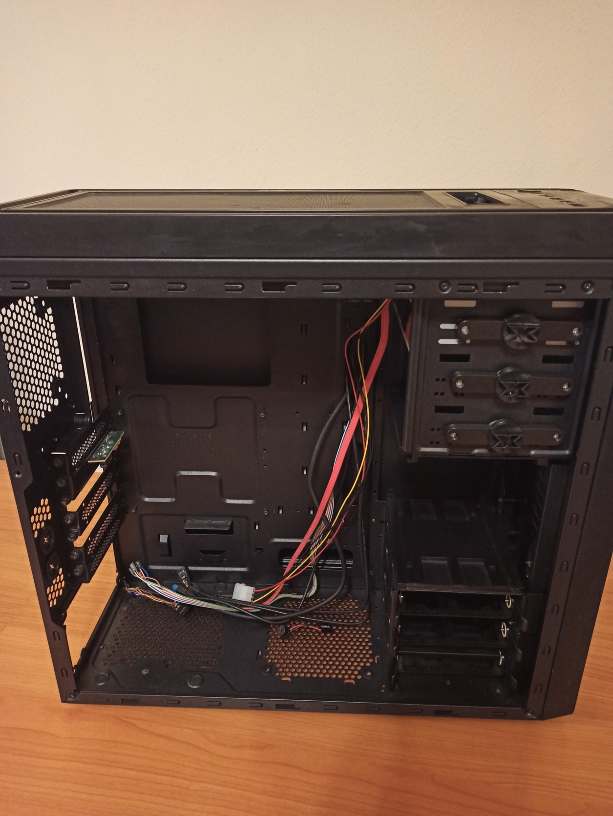 Eladó Xigmatek Midgard gépház, saját doboza nélkül. Tágas kialakítású, támogatott az ATX, mATX és ITX méretszabványú lapok, videókártya max 410mm-ig, CPU hűtő pedig max 170mm magasságig. A ventilátorok száma akár 8-ig is bővithető, mellette vízhűtés is alkalmazható. Beépített optikai meghajtóval és HDD rack-el. Esztétikai hibája, hogy a ház tetején lévő SATA dokkoló mindig nyitva van (ahogy a képen is látható), a záró mechanika nem működik.