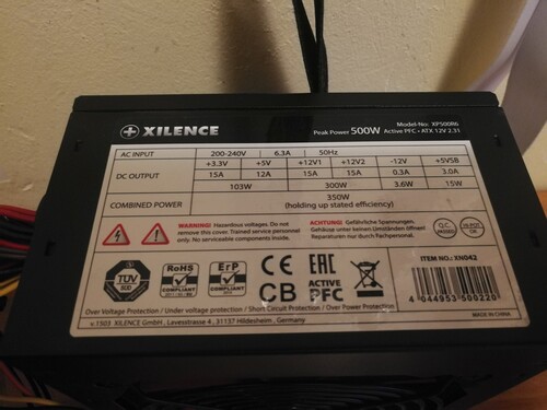 Xilence Performance C 500W tápegység, garancia lejárt, szinte új, nem sokat használt, doboz papírok nélkül.