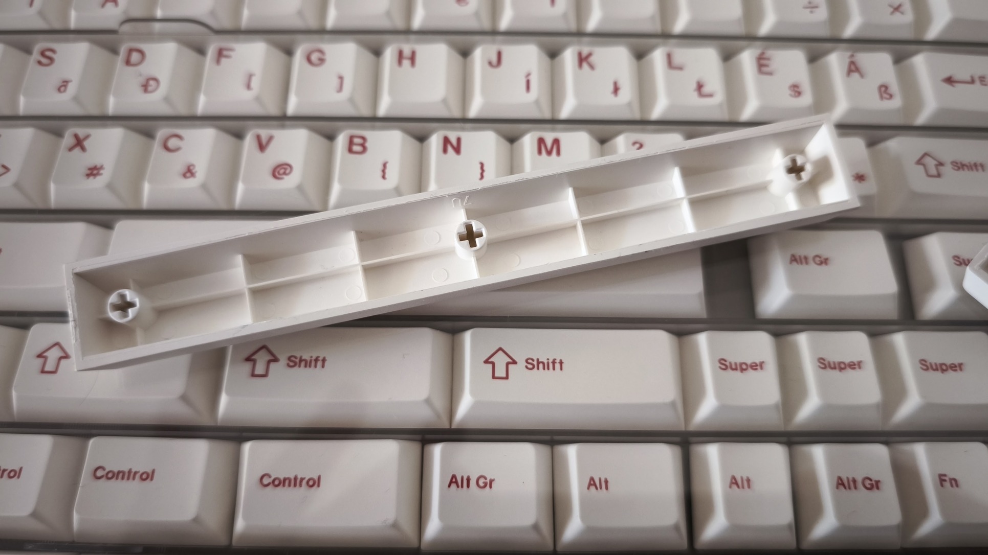 Fehér, burgundi betűkkel, prémium anyaghasználat, vastag falú PBT.