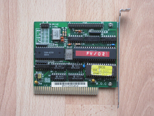 1.44 MB floppy vezérlő BIOS kiterjesztéssel, SUN & WDC chip, 8 bit ISA. - 10.000 FtBoot ROM induláskor bejelentkezik, lásd képen, CheckIt memory map menüjében látszik mint 8K Disk ROM.Floppy vezérlő tesztelt, működő,támogat 360, 720 kB, 1.2 MB és 1.44 MB floppy meghajtókat is.1.44 MB-os kis floppyról indítottam a DOS-t, XT gépen!