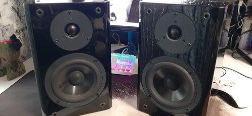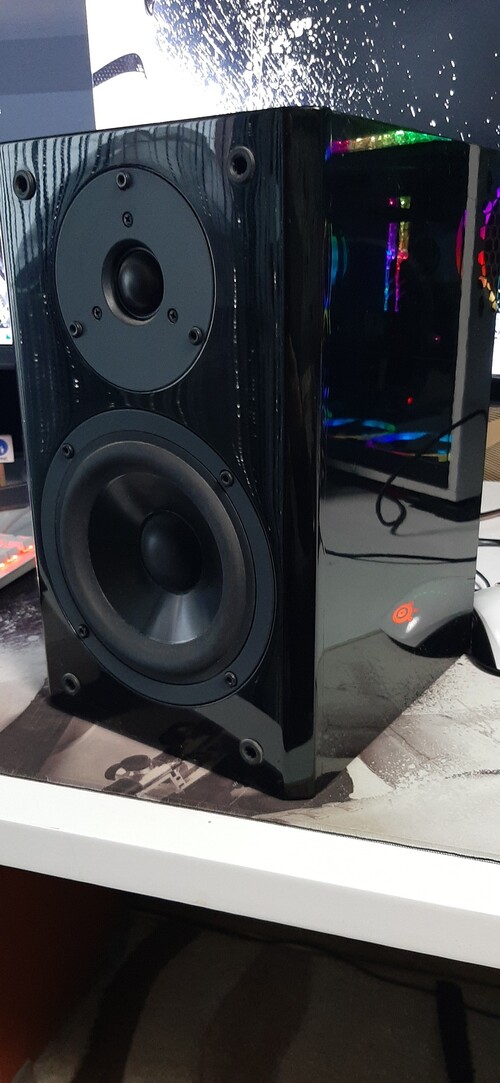 Jó állapotú,gyönyörű hangú,minőségi hangfalak fekete zongoralakk borítással.
