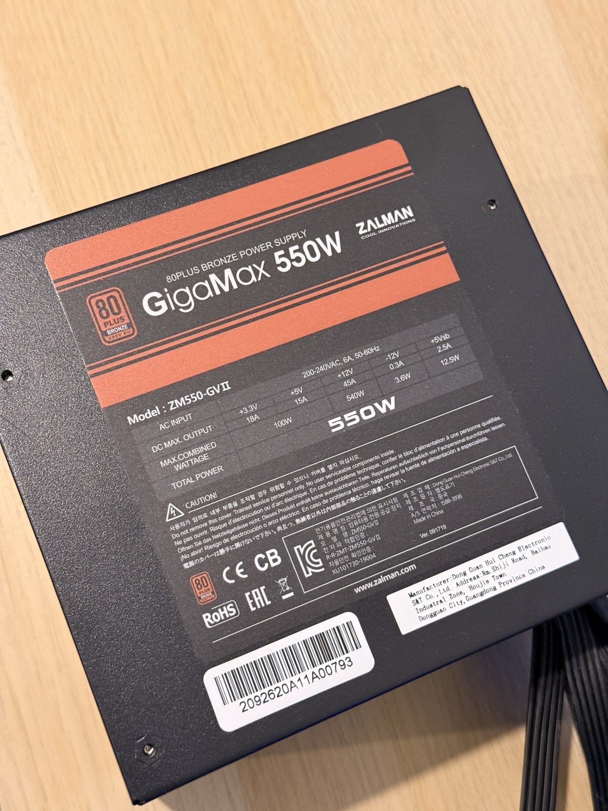 Zalman Gigamax 550w 80 plus bronze