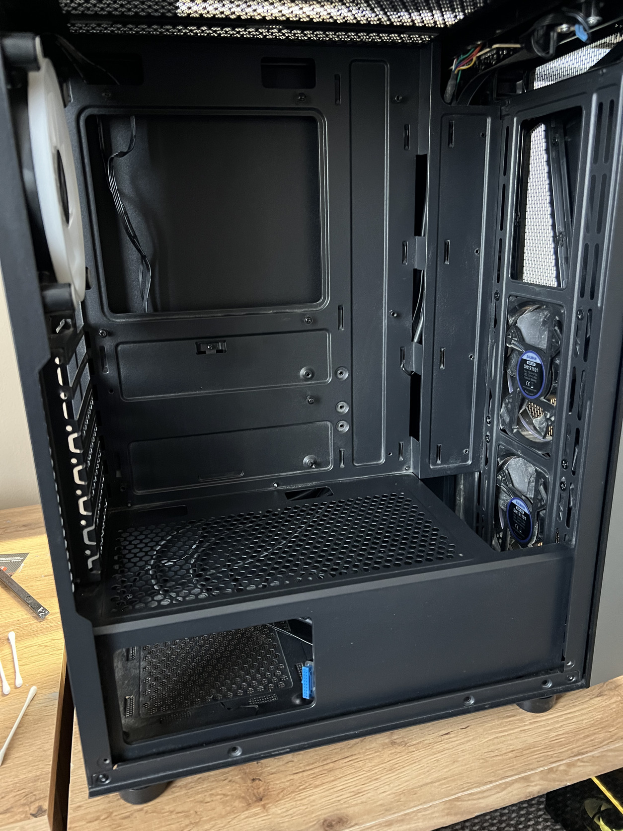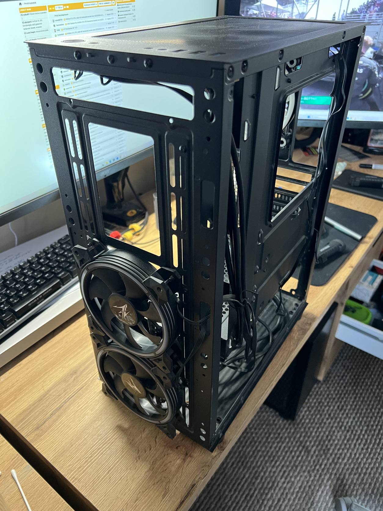 A gépházban van 3 ventilátor, állapotuk ismeretlen de kézzel átforgatva semmi hangjuk.