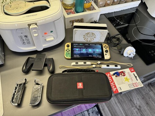 Szép állapotú Limited Zelda Oled Nintendo Switch 64GB alapgép,képen látható tartozékokkal! doboza sajna nincs meg!
