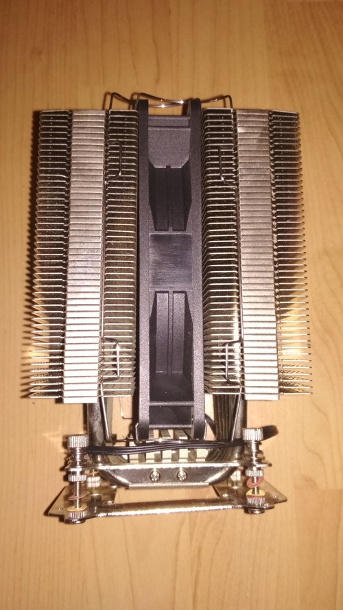 A gyári állapottal ellentétben csak egy venti van meg hozzá. A rendelkezésre álló rögzítőkkel még egy felhelyezhető. (Még egy ventivel is hatalmas hűtési teljesítmény.)