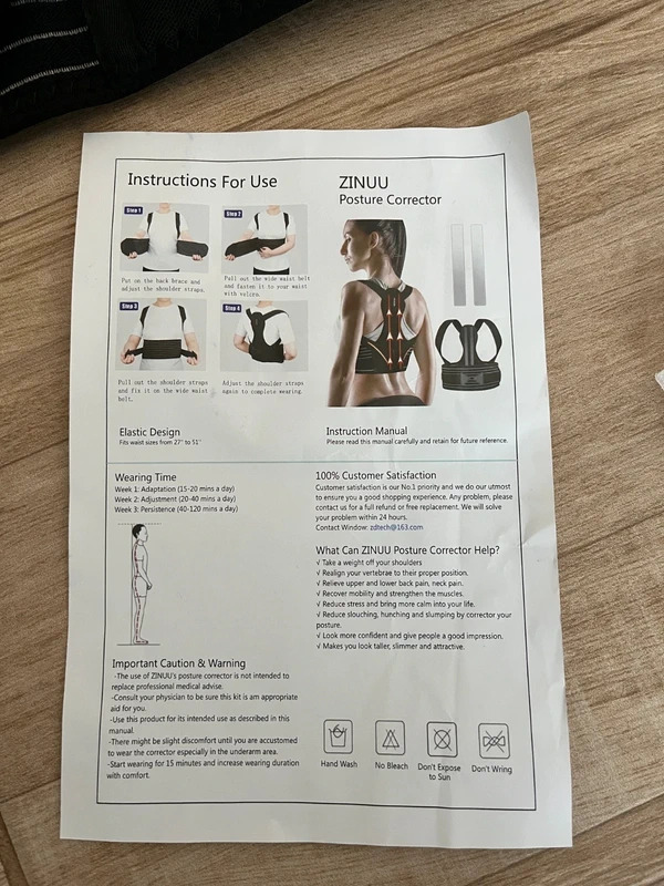Új, hibátlan. Kialakítása segíti a hát és a vállak helyes pozícióban tartását. Állítható pántokkal rendelkezik a kényelmes illeszkedés érdekében. Diszkréten hordható ruha alatt is.