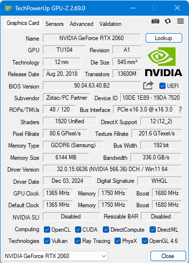 ZOTAC GAMING GeForce RTX 2060