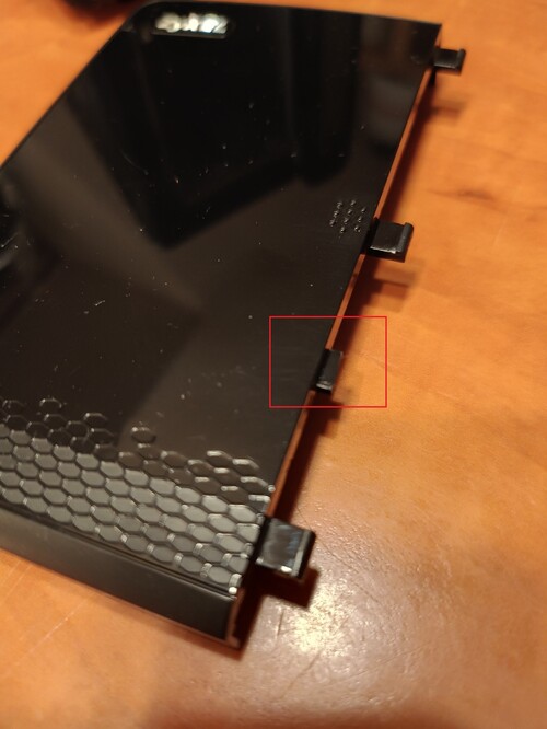 Működik, ventije nem hangos, slotok rendben, egy fül törött le az ajtajáról, amit a képen jelöltem pirossal. Az ajtó ettől természetesen rendesen zárható.
