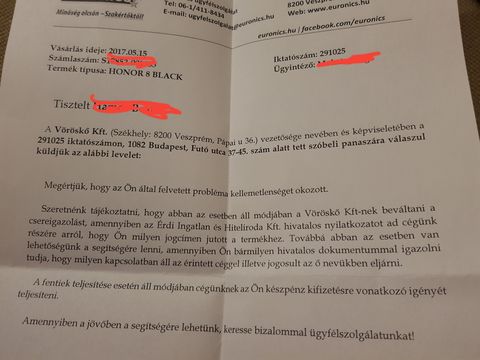 Sajnos olyan helyzetbe keveredtem az edigitall-lal illetve a Telemax (TMX) szervízzel, hogy a lassan két éves Lenovo Vibe Shot mobiltelefonom immáron harmadszorra kerül vissza a szervízbe javításra. Beporosodott a hátoldali kamerája nyáron, ezért leadtam javításra, ami egész gyorsan elkészült. Sajnos nem voltam figyelmes, és az újraragasztott üveg hátlap elvált a telefontól, néhány hét múlva újra beporosodott a kamera. Ezért újra leadtam (ekkor már az edigital-nál, mivel a szervíz ügyfélszolgálata sajnos időközben megszűnt). Visszakaptam másodszorra, ugyanúgy rosszul volt az üveg hátlap ráragasztva, ezért azonnal visszaküldtem harmadszorra is. Tehát nyár óta többet van a telefon szervízben, mint nálam. Kérdezném, hogy ez így megengedhető? Kihez kellene fordulni? Mostmár ott tartok, hogy fizessék vissza telefon árát. Köszi a segítséget!