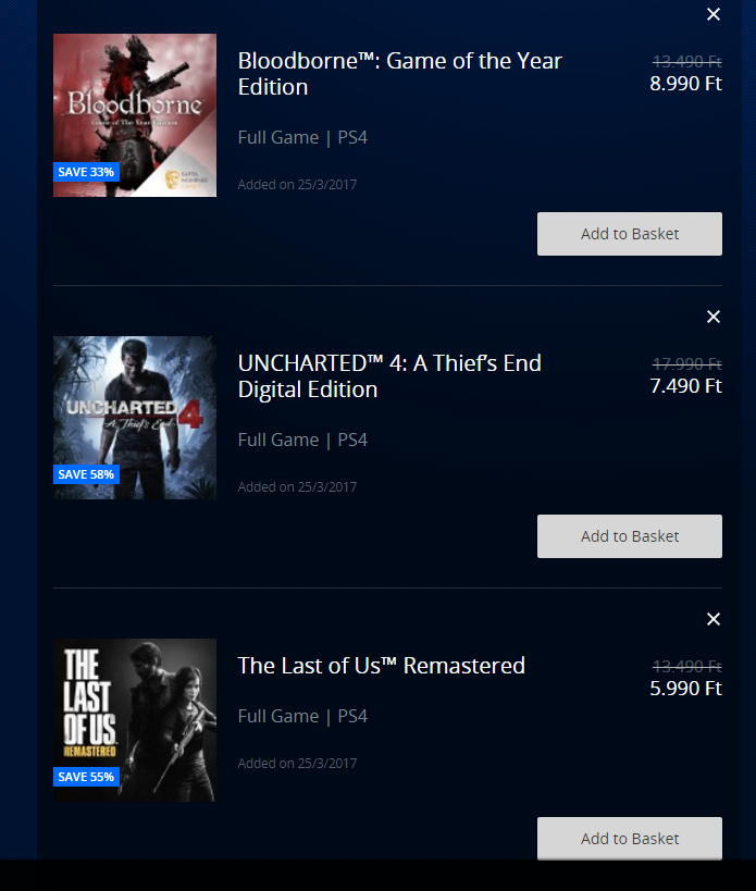 The Last of Us, Uncharted, BloodBorn.Mennyi ideig szoktak tartani ezek az akciók ott? Illetve látom a Nioh! akciós (40$), de magyar store-on még a full ár szerepel...