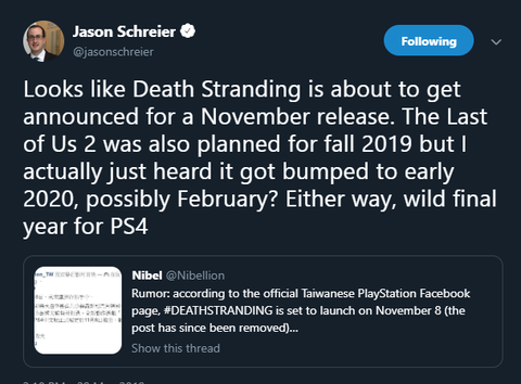 Death Stranding megjelenési dátum: 2019. november 8.