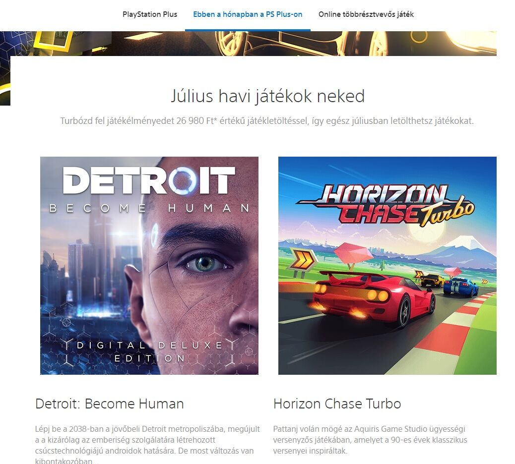 PSN Plus-ra kattintva az oldalon látjátok, hogy a Horizon Chase mellett nem egy PES, hanem egy Detroit Deluxe van havi játéknak (banner)? Még nem frissült be, de érdekes!