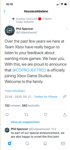 Màr ott sàntit a dolog, ha valami csoda folytán megvennék a CDPR-t, azt nem Twitterre írnàk ki.