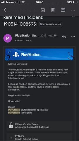 Sajnos nem tudtam feltenni a képet amit kaptam a Playstation SupportRöviden annyit irtak,hogy nem tudják aktiválni a konzolt mert tartozás van rajta.És csak az tudja rendezni akinek keletkezett a tartozás.