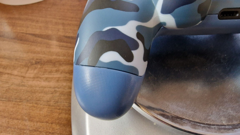 Az eredeti DS4 kontrollernek is van némi hézag a két műanyag illesztésénél, de közel sem akkora méretű, mint annál a kamuflázsos kontrollernél.