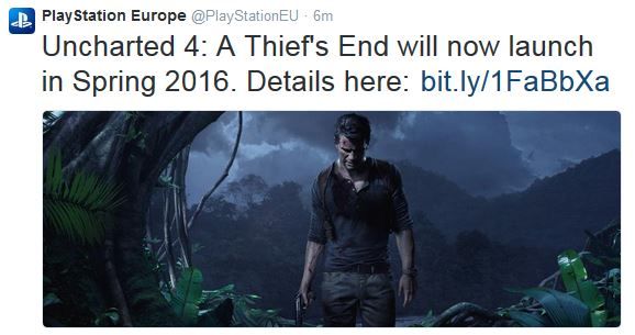 Köszönjük a türelmeteket – tudjuk, hogy az extra várakozás nehéz lesz, de ahogy újabb részleteket osztunk majd meg veletek az Uncharted 4-ről, látni fogjátok, hogy megéri. A Naughty Dog csapata egész évben azon fog dolgozni, hogy Nathan Drake története méltó lezárást kapjon. 2016 tavaszán ti és Nate egy izgalmas, érzelmekkel teli utazás részesei lesztek."