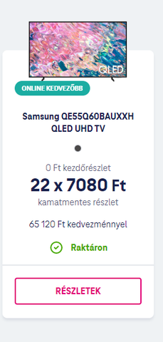 TV-t eszem ágában sincs venni, csak az összehasonlítás miatt kerestem rá. A BF engem se érdekel, lesznek ugyanúgy akciók karácsonyra is, ha nem akarnak éhendögleni.Telóban is maximum olyat, ami 2 év múlva is használható lesz, a mostani nagyon gyorsan elavult.